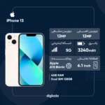 آیفون 13 جدیدترین محصول از سری گوشی‌های هوشمند اپل است که با طراحی زیبا، ویژگی‌های پیشرفته و عملکرد بی‌نظیر، تمامی انتظارات شما از یک گوشی هوشمند را برآورده می‌کند. با داشتن دوربین‌های قدرتمند، پردازنده سریع، صفحه نمایش با کیفیت و باتری بهینه شده، آیفون 13 تجربه‌ای متفاوت از کار با گوشی‌های هوشمند را برای شما به ارمغان می‌آورد.